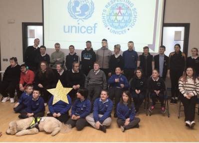 On Tuesday the 24th March some pupils travelled to Arvalee School in Omagh. They attended rights Respecting School Conference. Each school showed how they learn about rights in their school. There were three schools Lisanally, Arvalee and Knockavoe in Strabane. They also linked with eight other school in the conference in Belfast via zoom and had a talk form Katelyn Farrenson from UNICEF and Mr Quinn from the Ni commissions for children and young people. The pupils showed of our Rights Respecting school mascot Lisa Nally. They had a great day linking with other schools and seeing their ideas.